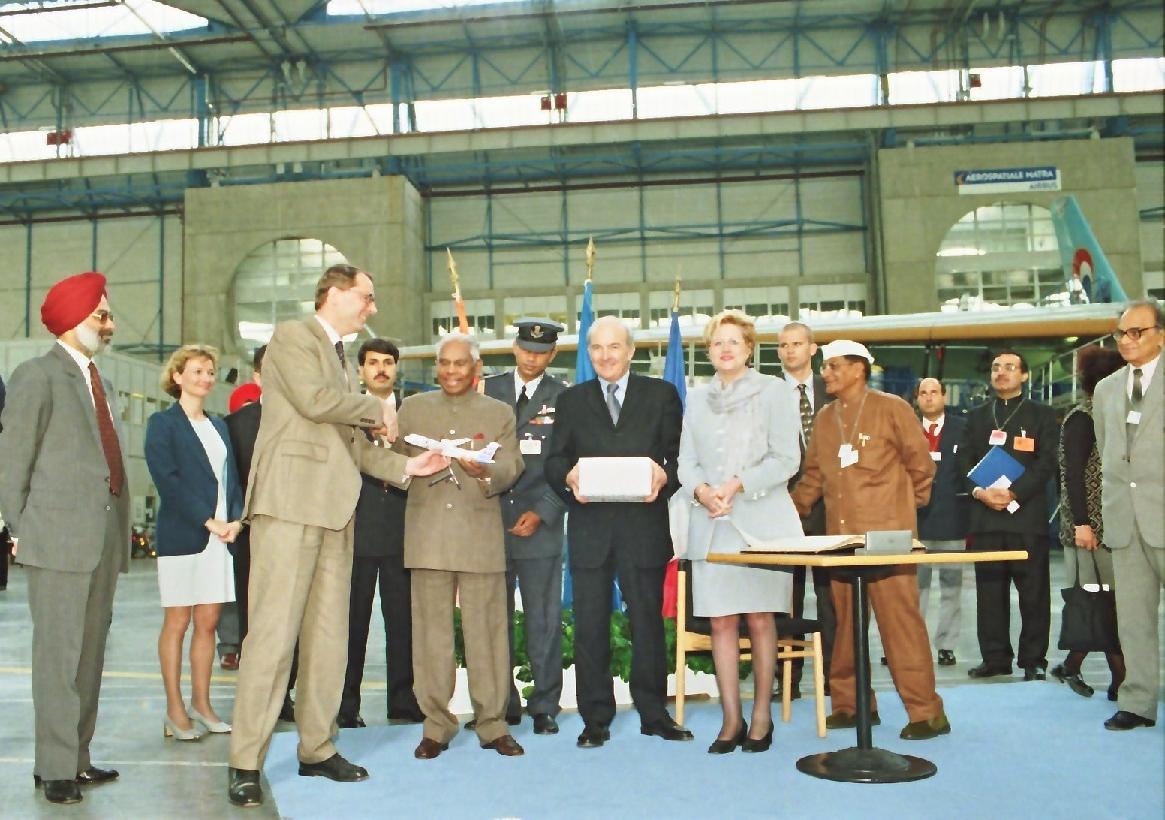The President of India, Shri K R Narayanan visiting the Aerospace Industry's Airbus Factory with the Tourism Minister of France, HE Ms Michelle Demessine and also Signed the Visitor's Book at Toulouse in France on April 19, 2000