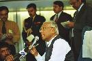 The President of India, Shri K R Narayanan interacting with the Media Person on Board after his Foreign Visit to Germany and Austria on Nov 10, 1999