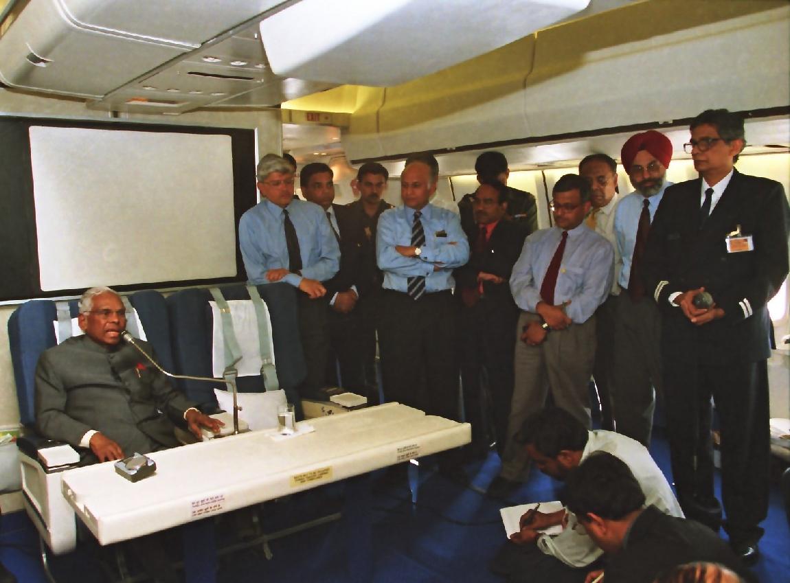 The President of India, Shri K R Narayanan interacting with the Media Personnel on his way back to India after his State Visit to China on June 03, 2000