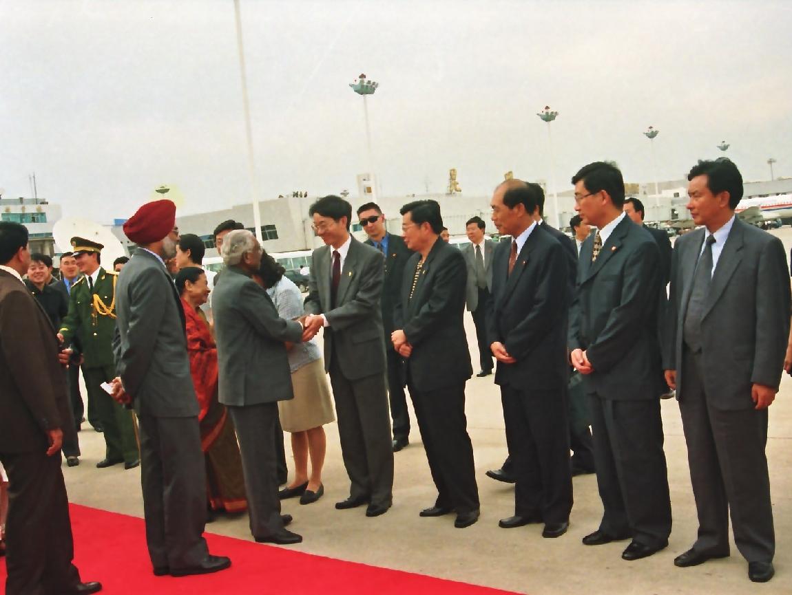 The President of India, Shri K R Narayanan being greeted before his departure from Kunming City Airport in China on June 03, 2000