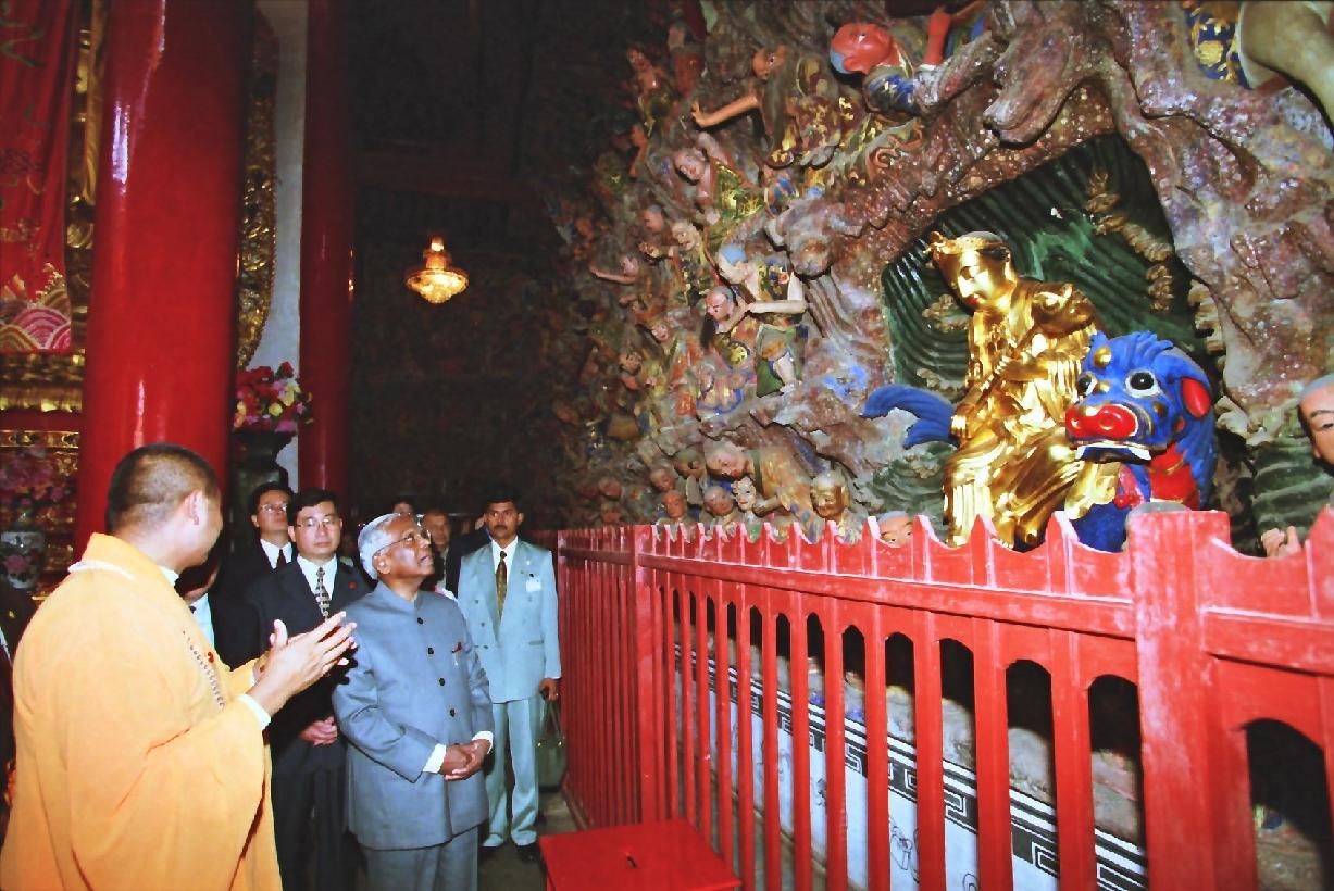 The President of India, Shri K R Narayanan visiting the Hua Ting Temple at Kunming in China on June 03, 2000