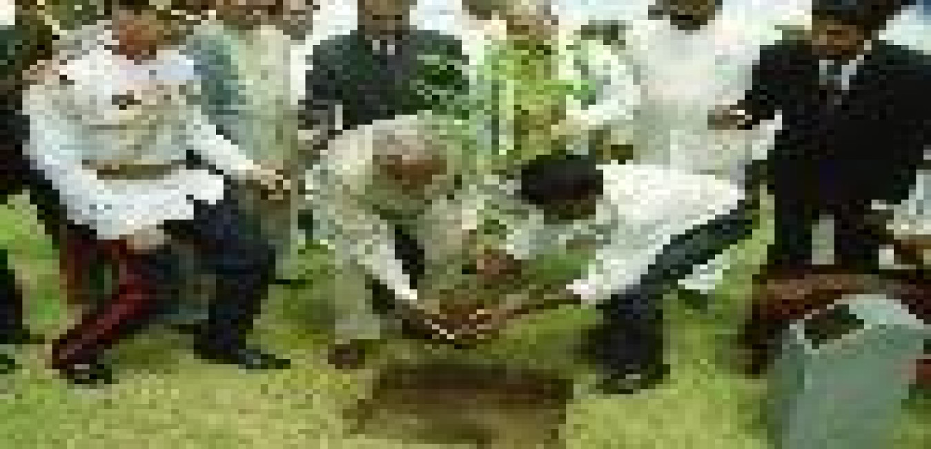 The President of India, Shri K R Narayanan planting a Neem Tree and signing in the Visitors Book at State House in Mauritius on March 10, 2001