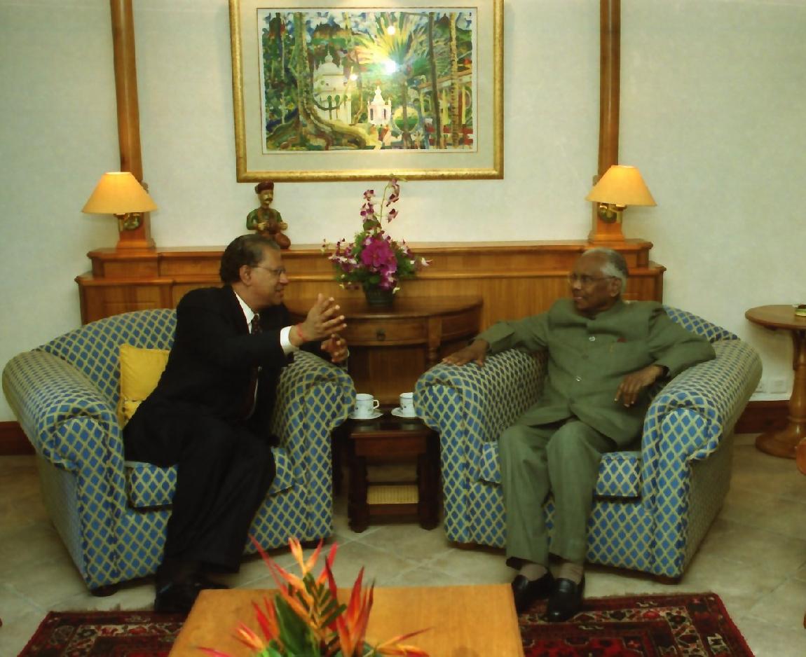 The Leader of Opposition, HE Dr Navin Ramgoolamn calling on the President of India, Shri K R Narayanan at Port Louis in Mauritius on March 11, 2001