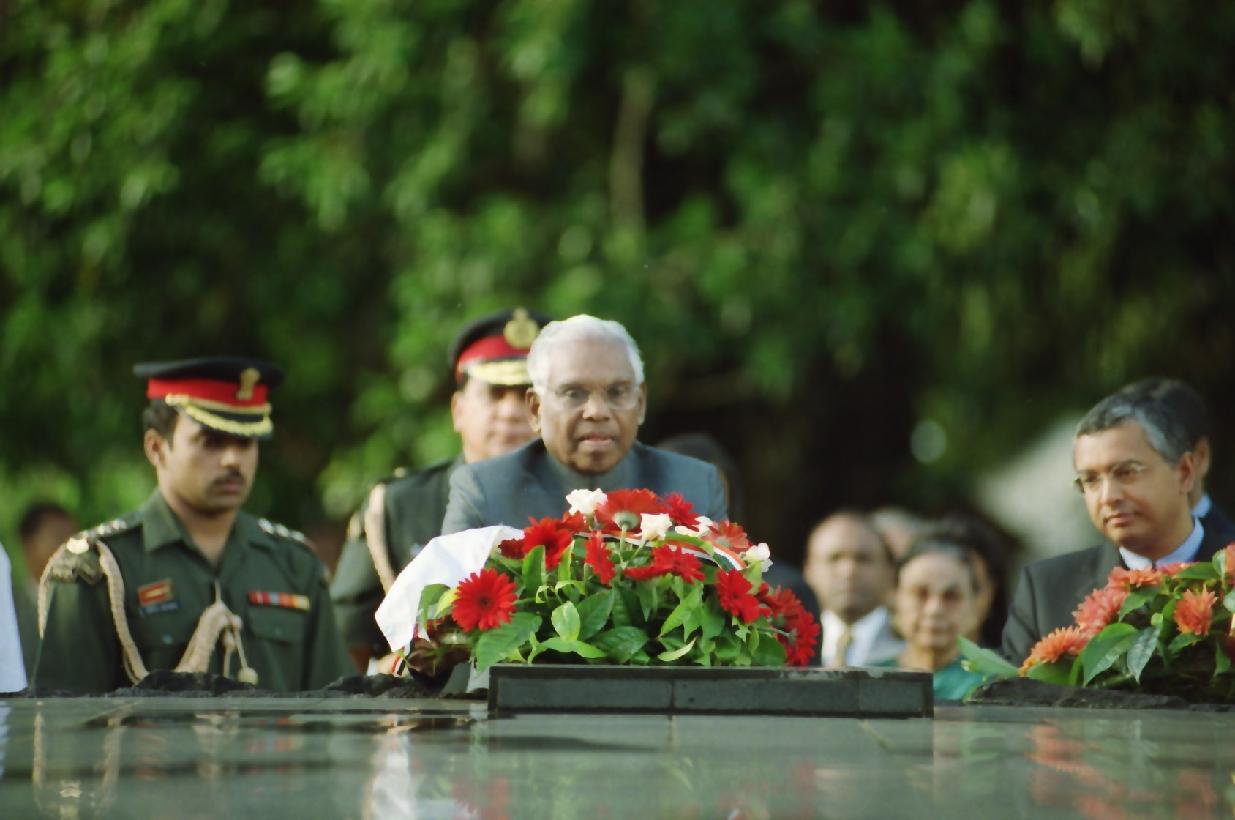 The President of India, Shri K R Narayanan laying the wreath at the Samadhi of Sir Seewoosagur Ramgoolam at Pamplemousses Botanical Garden in Mauritius on March 11, 2001