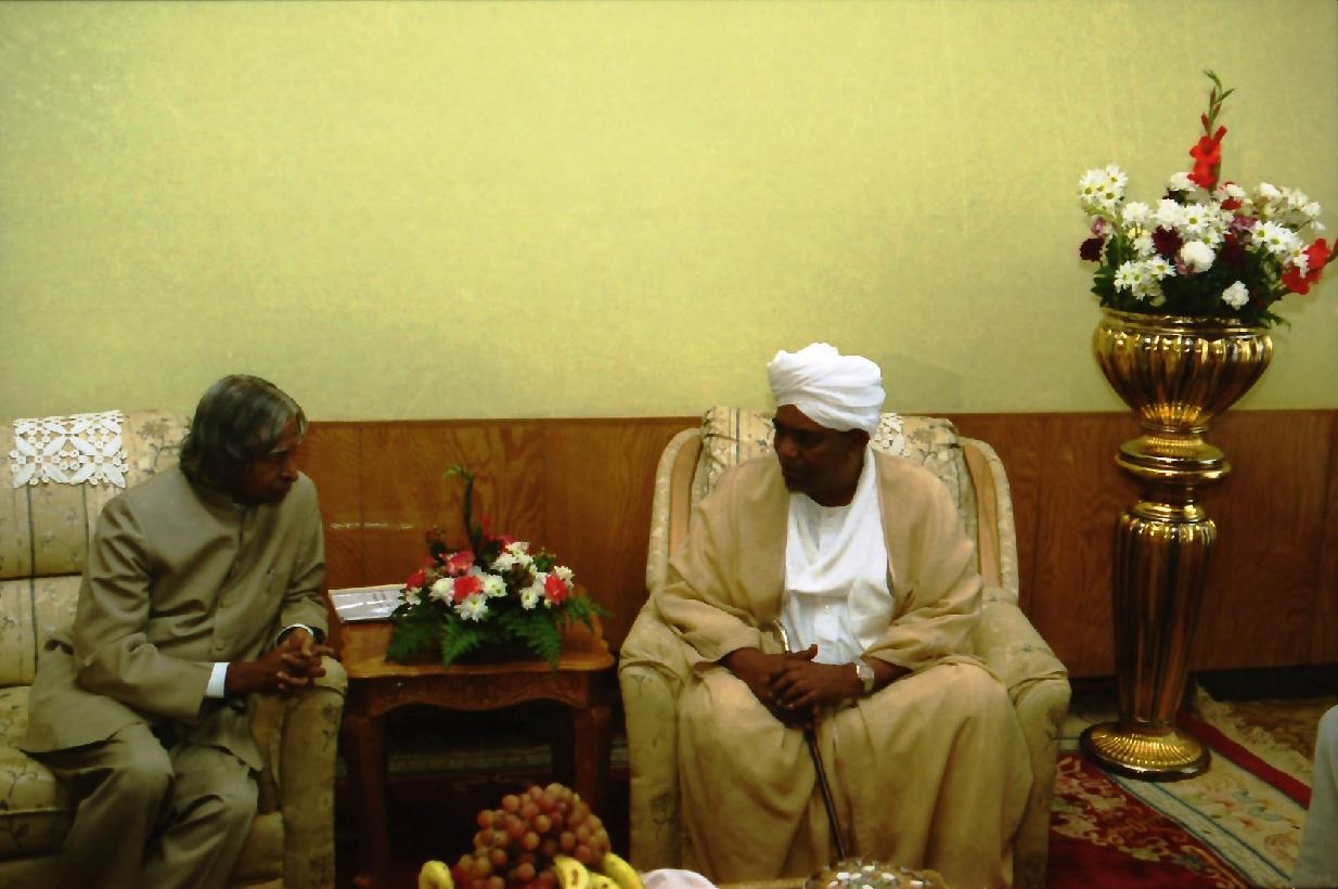 The Minister of Foreign Affairs calling on the President of India, Dr A P J Abdul Kalam at the Hilton Hotel in Sudan on Oct 21, 2003