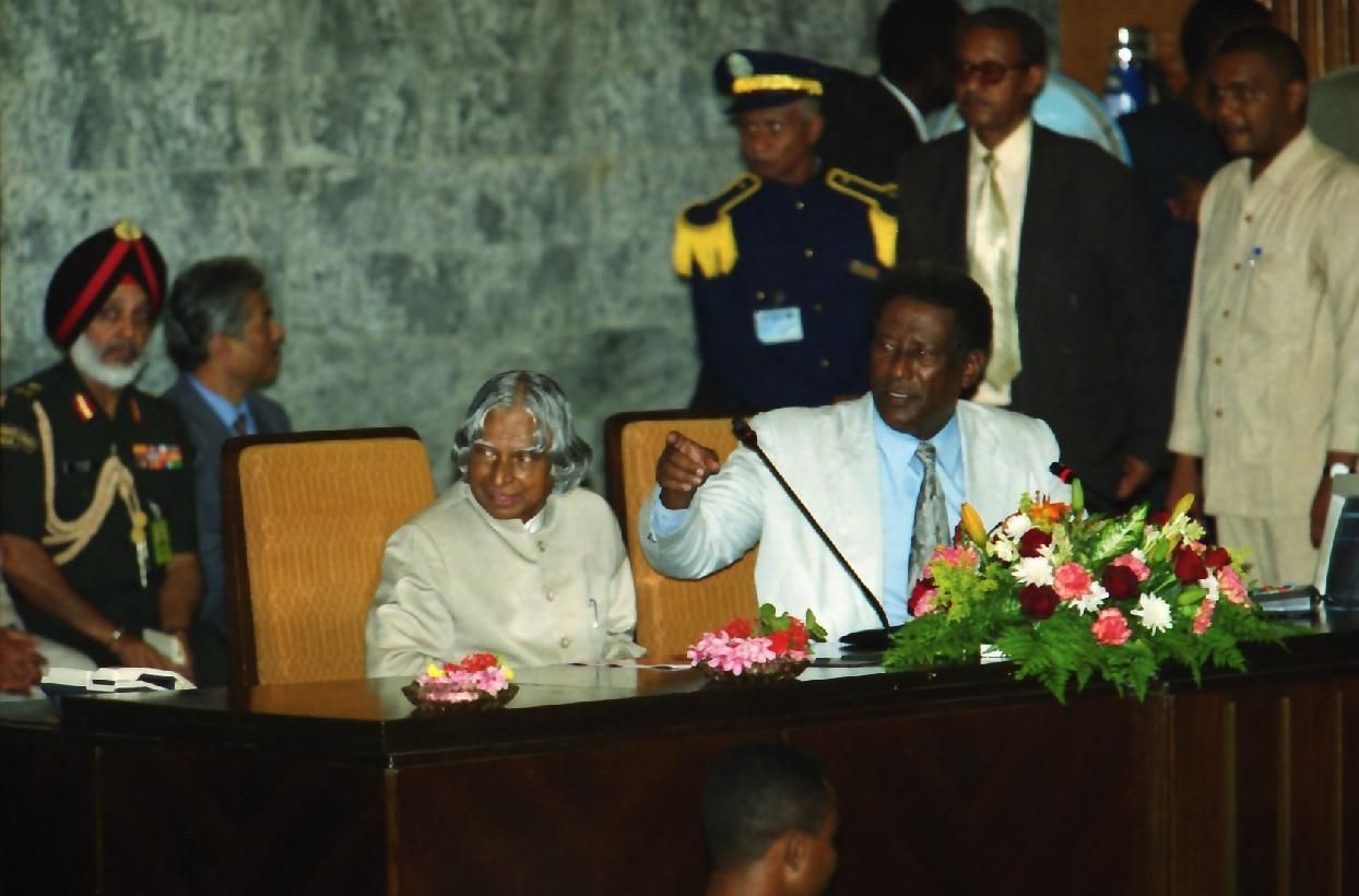 The Minister of Energy calling on the President of India, Dr A P J Abdul Kalam at the Hilton Hotel in Sudan on Oct 21, 2003