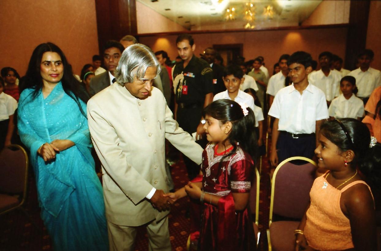 The President of India, Dr A P J Abdul Kalam visiting the Indian Higher School at Zabeel Palace in United Arab Emirates on Oct 19, 2003