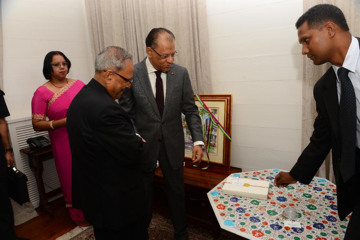 The President of India, Shri Pranab Mukherjee meeting the Prime Minister of Mauritius on 12 March 2013