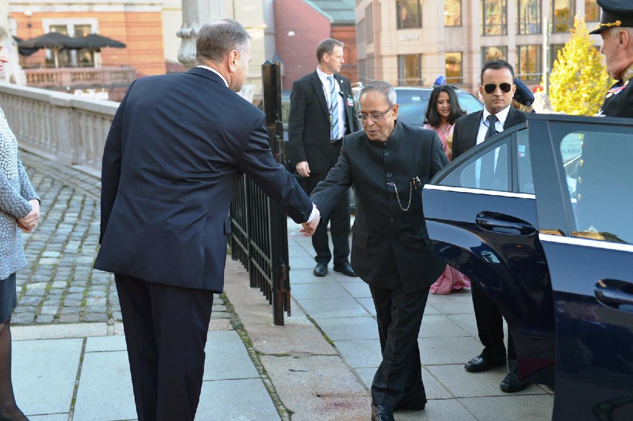 The President of India, Shri Pranab Mukherjee during visit to Oslo City Hall at Oslo in Norway on Oct 13, 2014