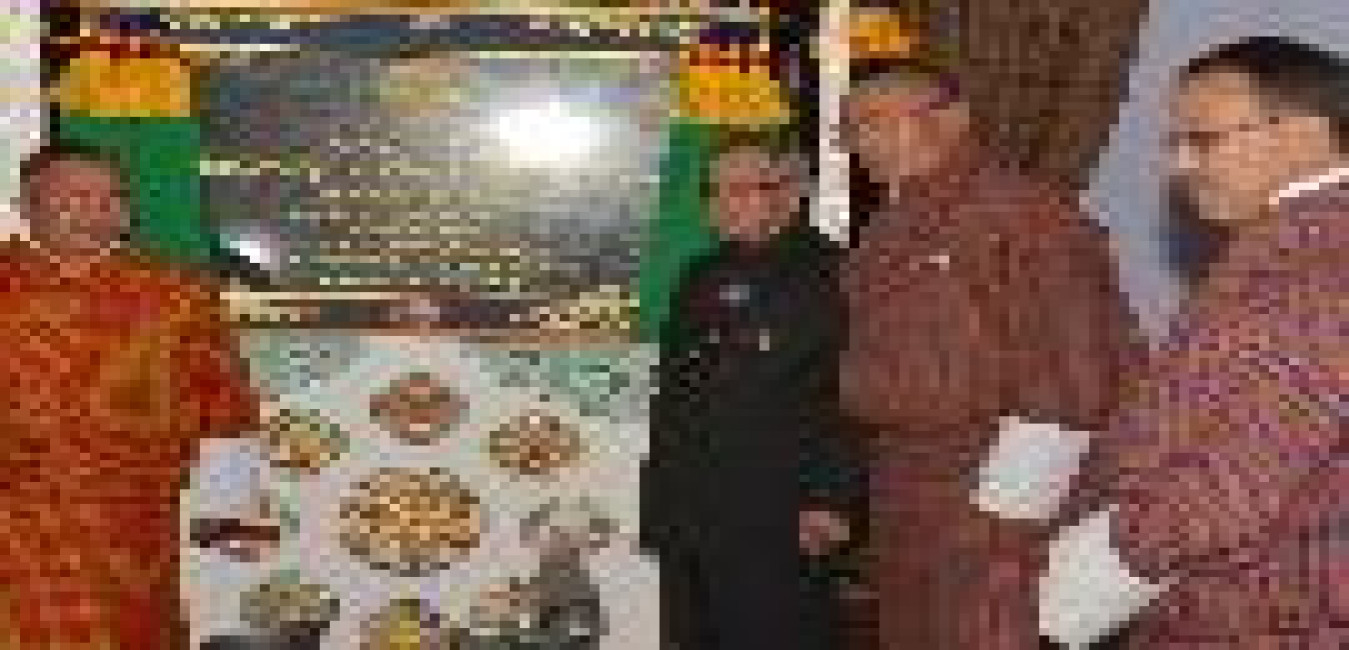 The President of India, Shri Pranab Mukherjee with the Prime Minister of Bhutan, HE Mr Tshering Tobgay to witnessing the signing of Educational MoUs between the Bhutan and India at Thimphu in Bhutan on Nov 08, 2014