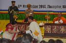 The President of India, Shri Pranab Mukherjee at the Ceremonial Reception at Thimphu Palace in Bhutan on Nov 07, 2014