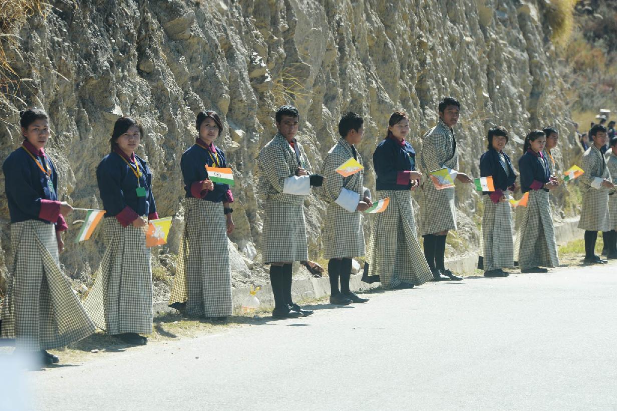 The President of India, Shri Pranab Mukherjee being welcomed by the School Children of Bhutan at Thimphu in Bhutan on Nov 08, 2014