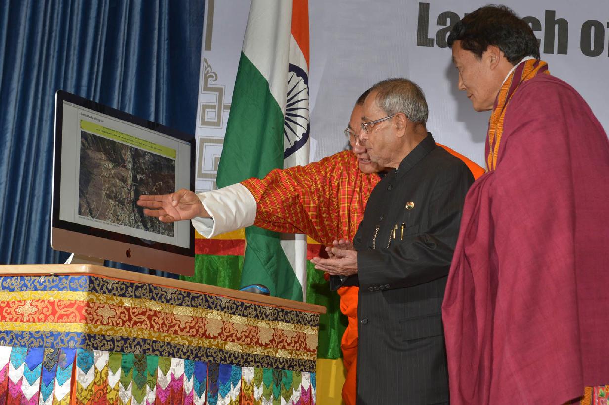 The President of India, Shri Pranab Mukherjee addressing on Indo-Bhutan Relations and launching the Government of India-Supported Projects at Thimphu in Bhutan on Nov 08, 2014