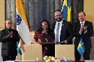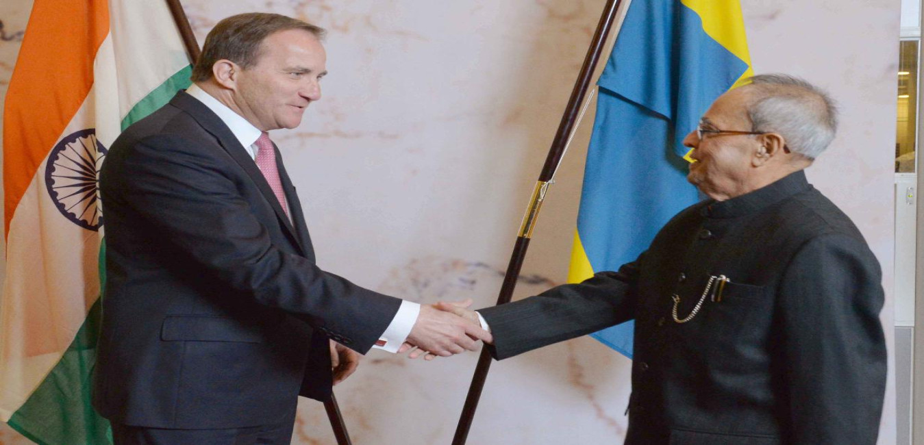 The President of India, Shri Pranab Mukherjee and the Prime Minister of Sweden, Mr. Stefan Lofven witnessing the signing of agreements, at Stockholm, in Sweden on June 01, 2015.