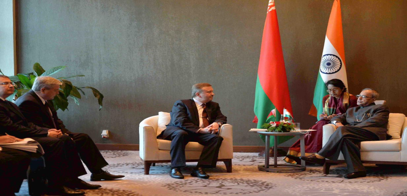 The Prime Minister of Republic of Belarus, Mr. Andrei Kobyakov calling on the President of India, Shri Pranab Mukherjee, at Hotel Renaissance, at Minsk, in Belarus on June 03, 2015.
