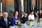 The President of India, Shri Pranab Mukherjee during meeting with the Mayor of Stockholm, Ms. Karin Wanngard and the President of the Stockholm City Council, Ms. Eva Louise Erlandsson Slorach, followed by a luncheon, at Rosenbad, during his state visit of Sweden, in Stockholm on June 01, 2015. H.M. King Carl XVI Gustf and Queen, Princess Victoria, His Royal Highness Prince Carl Philip and Ms. Sofia Hellqvist also present on the occasion.