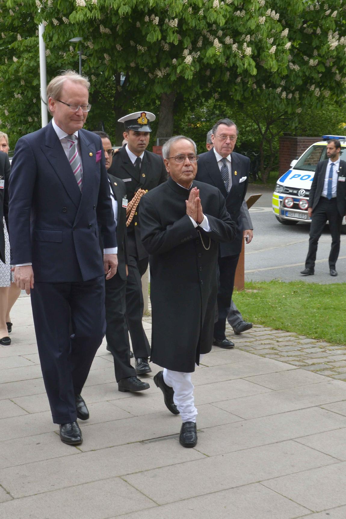 The President of India, Shri Pranab Mukherjee arrives at the Inner Courtyard of the Royal Palace, during his State visit to Sweden, at Stockholm on May 31, 2015.