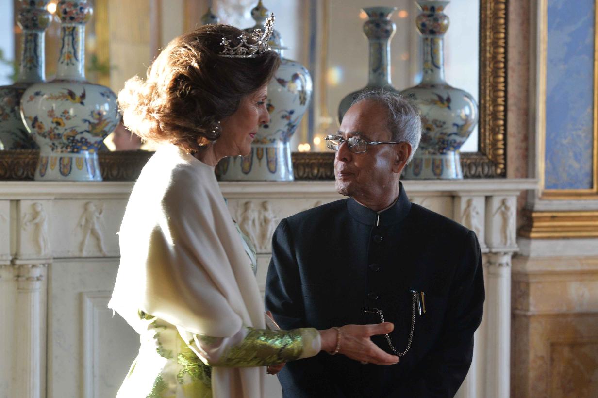 The President of India, Shri Pranab Mukherjee at the Banquet hosted by their Majesties H.M. King Carl XVI Gustf and Queen, at Royal Palace, at Stockholm, in Sweden on June 01, 2015. Princess Victoria, His Royal Highness Prince Carl Philip and Ms. Sofia Hellqvist also attended the Banquet.