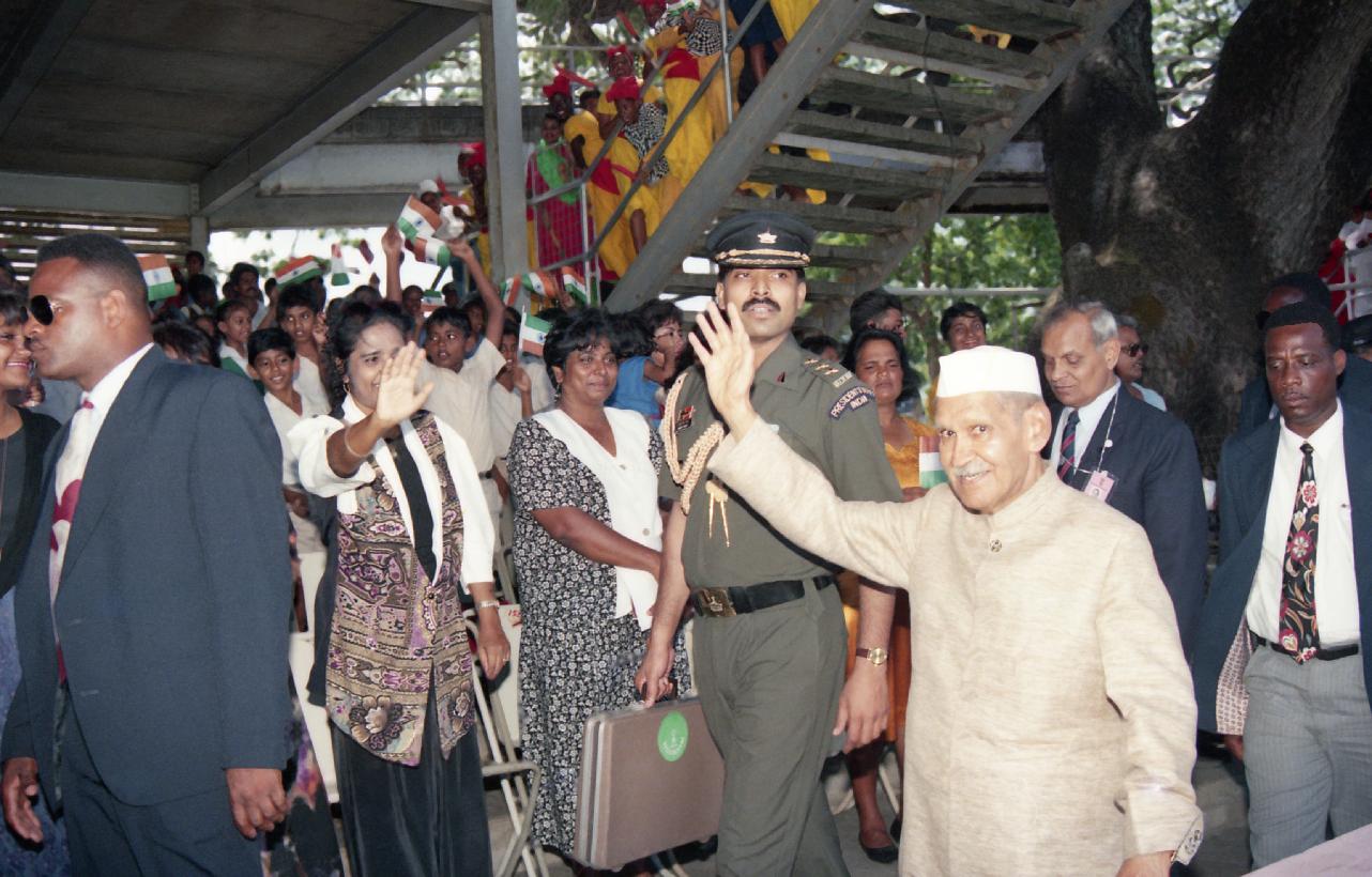 The President of India, Dr. Shankar Dayal Sharma attending the 150th Anniversary of Indian Arrival Day, at Port of Spain on May 30, 1995.