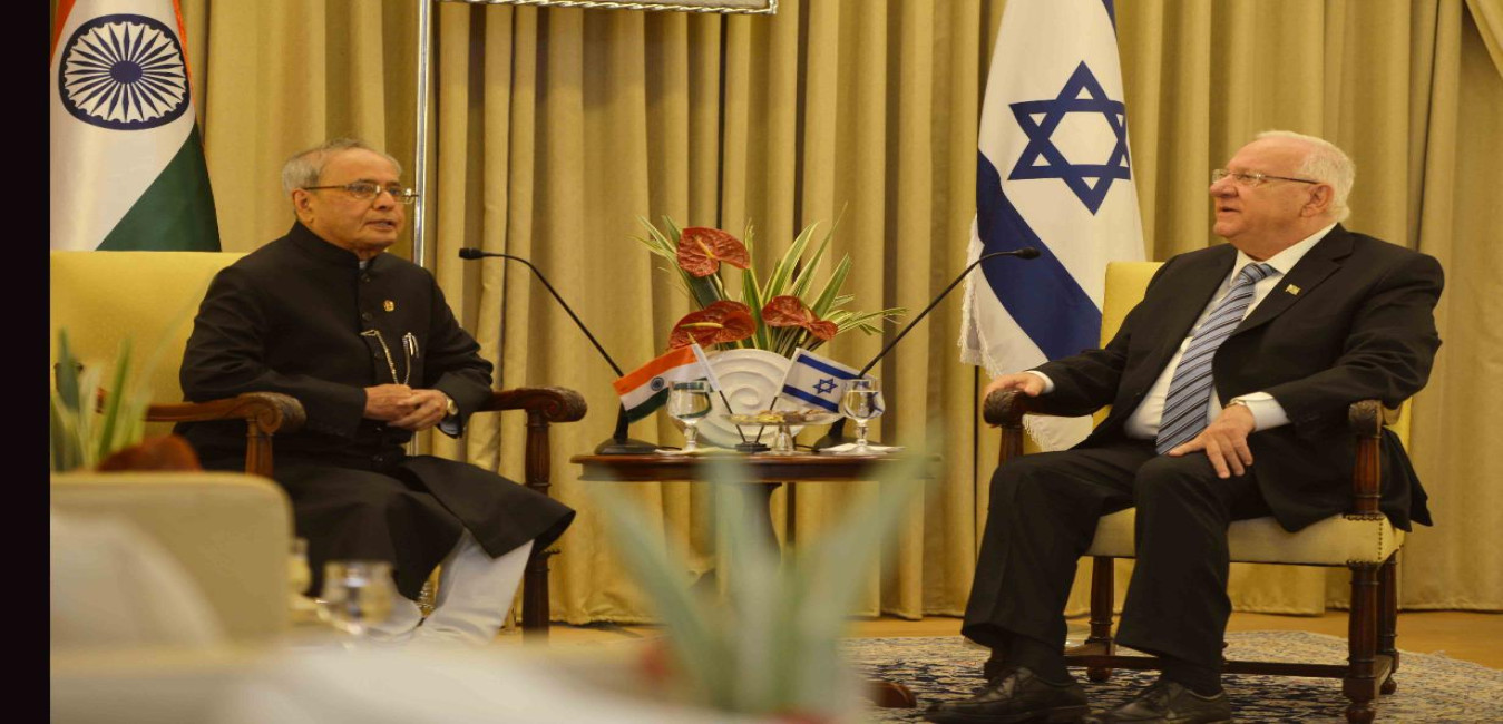 The President of India, Shri Pranab Mukherjee meeting the President of Israel, H.E. Mr. Reuven Rivlin, at President House, Jerusalem, in Israel on October 14, 2015.