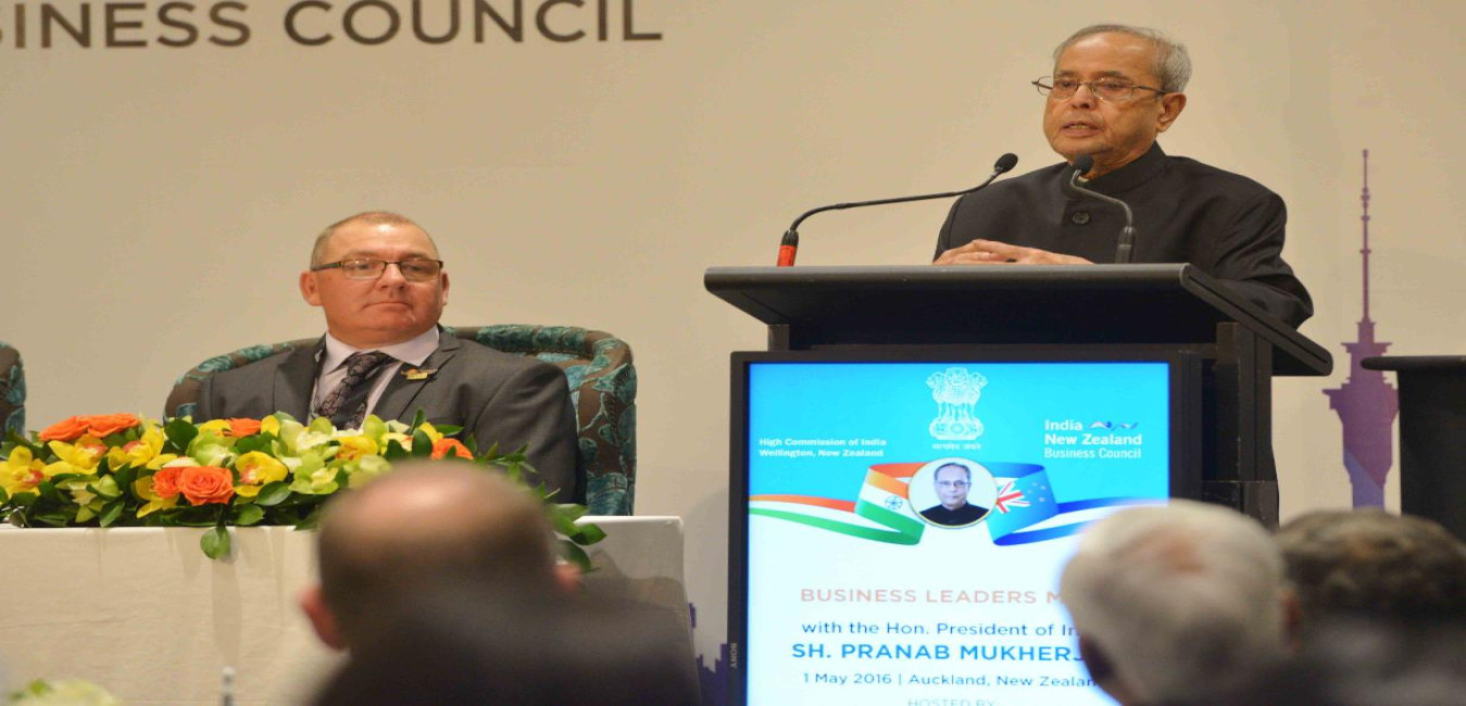 The President of India, Shri Pranab Mukherjee addressing the Business gathering at Auckland in New Zealand on May 01, 2016.