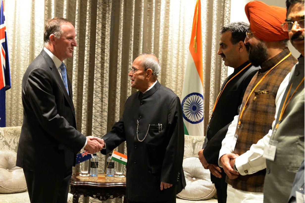The Prime Minister of New Zealand, Mr. John Key calling on the President of India, Shri Pranab Mukherjee, at Auckland in New Zealand on May 1, 2016.