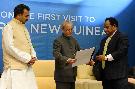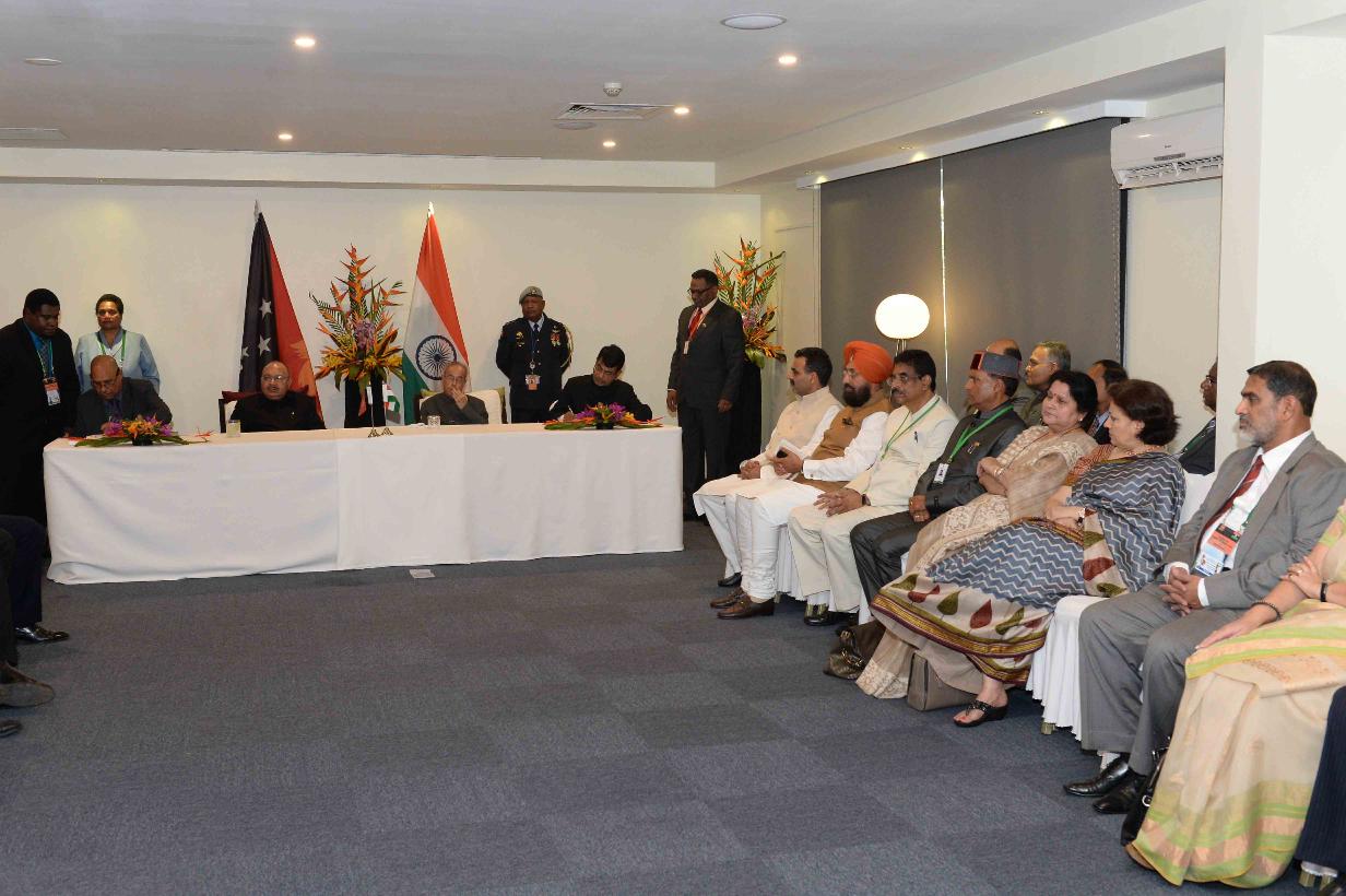 The President of India, Shri Pranab Mukherjee and the Prime Minister of Papua New Guinea, Hon. Mr. Peter O Neill witnessing the various Signing of Agreements/MOUs between India and Papua New Guinea, at Port Moresby, in Papua New Guinea on April 29, 2016.