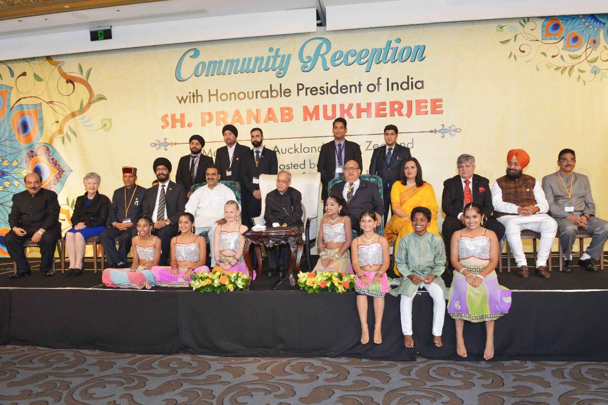 The President of India, Shri Pranab Mukherjee attending the Indian Community Reception hosted by Shri Sanjiv Kohli, High Commissioner of India in New Zealand, at Auckland, in New Zealand on May 01, 2016.