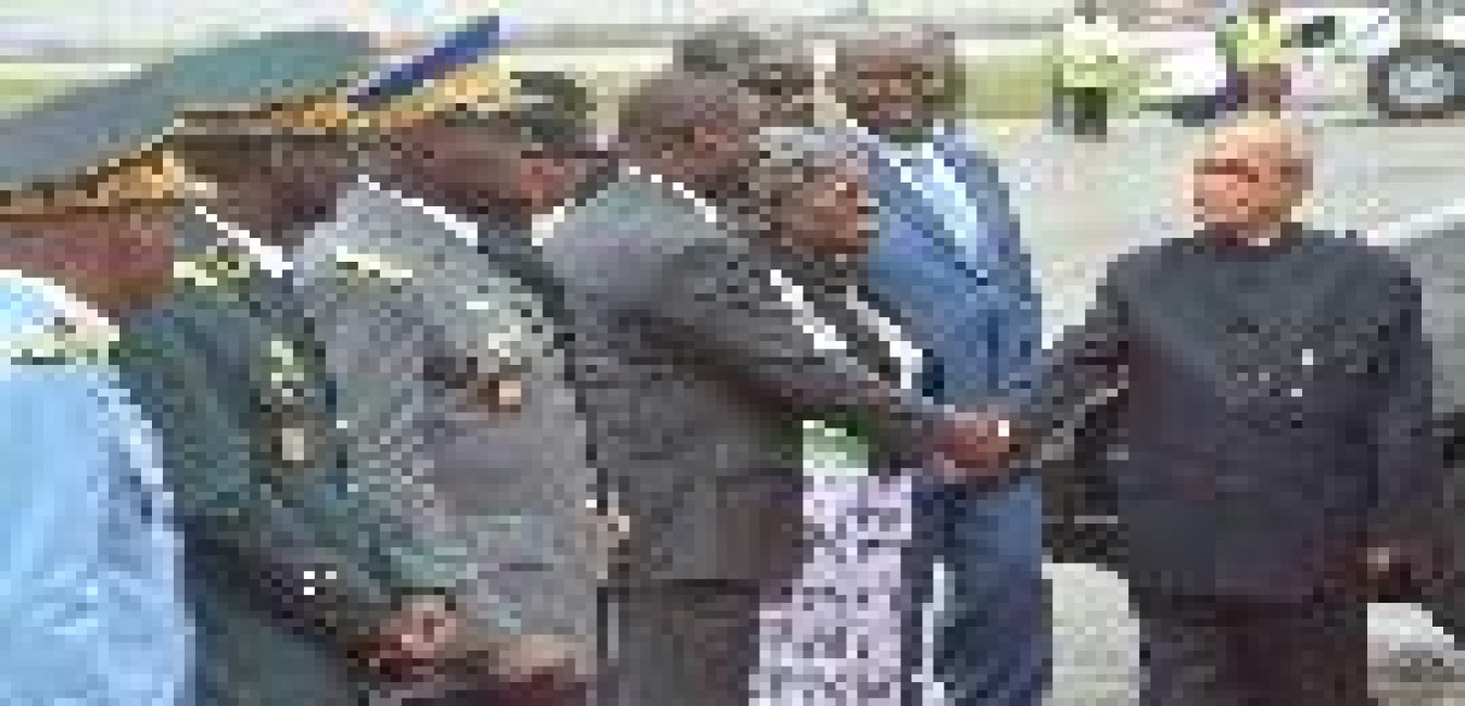 The President of India, Shri Pranab Mukherjee being received by the President of the Republic of Cote d lvoire, H.E. Mr. Alassane Ouattara, on his arrival, at Abidjan International Airport, in Republic of Cote d lvoire on June 14, 2016.
