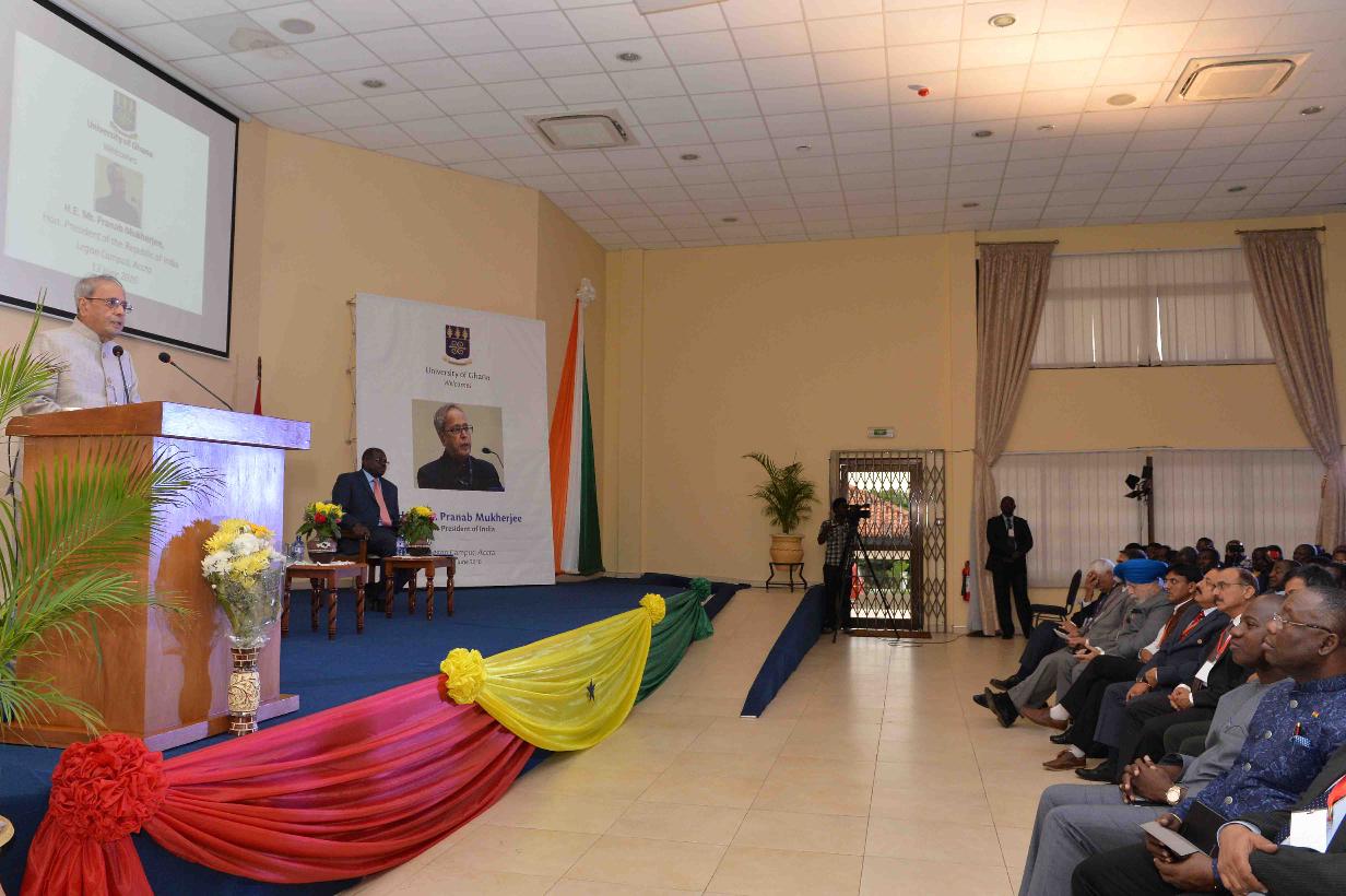 The President of India, Shri Pranab Mukherjee addressing the students and faculty members of India-Ghana Kofi Annan Centre for Excellence, in Accra, Ghana on June 14, 2016.