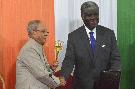 The President of India, Shri Pranab Mukherjee receiving Key and Parchment of city of Abidjan from Mr. Robert Beugré Mambé, Governor of Abidjan, at District Hotel, in Abidjan, Republic of Cote d lvoire on June 15, 2016.
