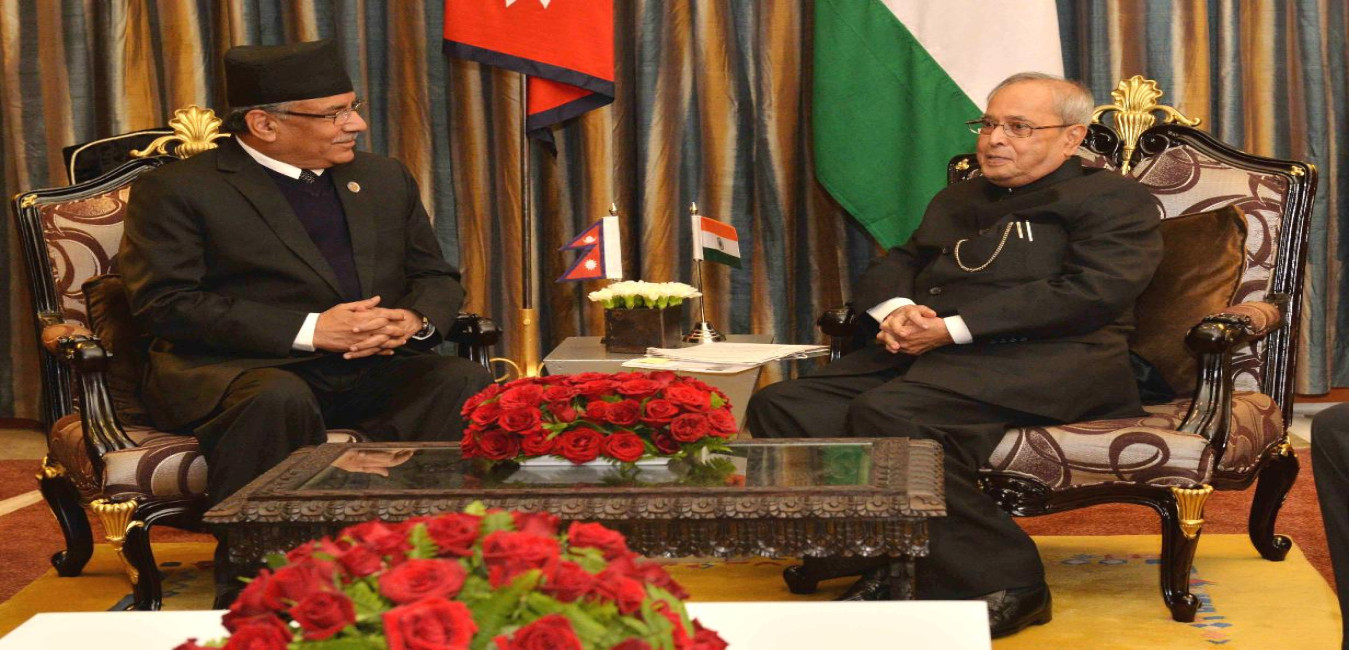 The Prime Minister of Nepal, Rt. Hon ble Mr. Pushpa Kamal Dahal Prachanda calling on the President of India, Shri Pranab Mukherjee, at Kathmandu, in Nepal on November 02, 2016.