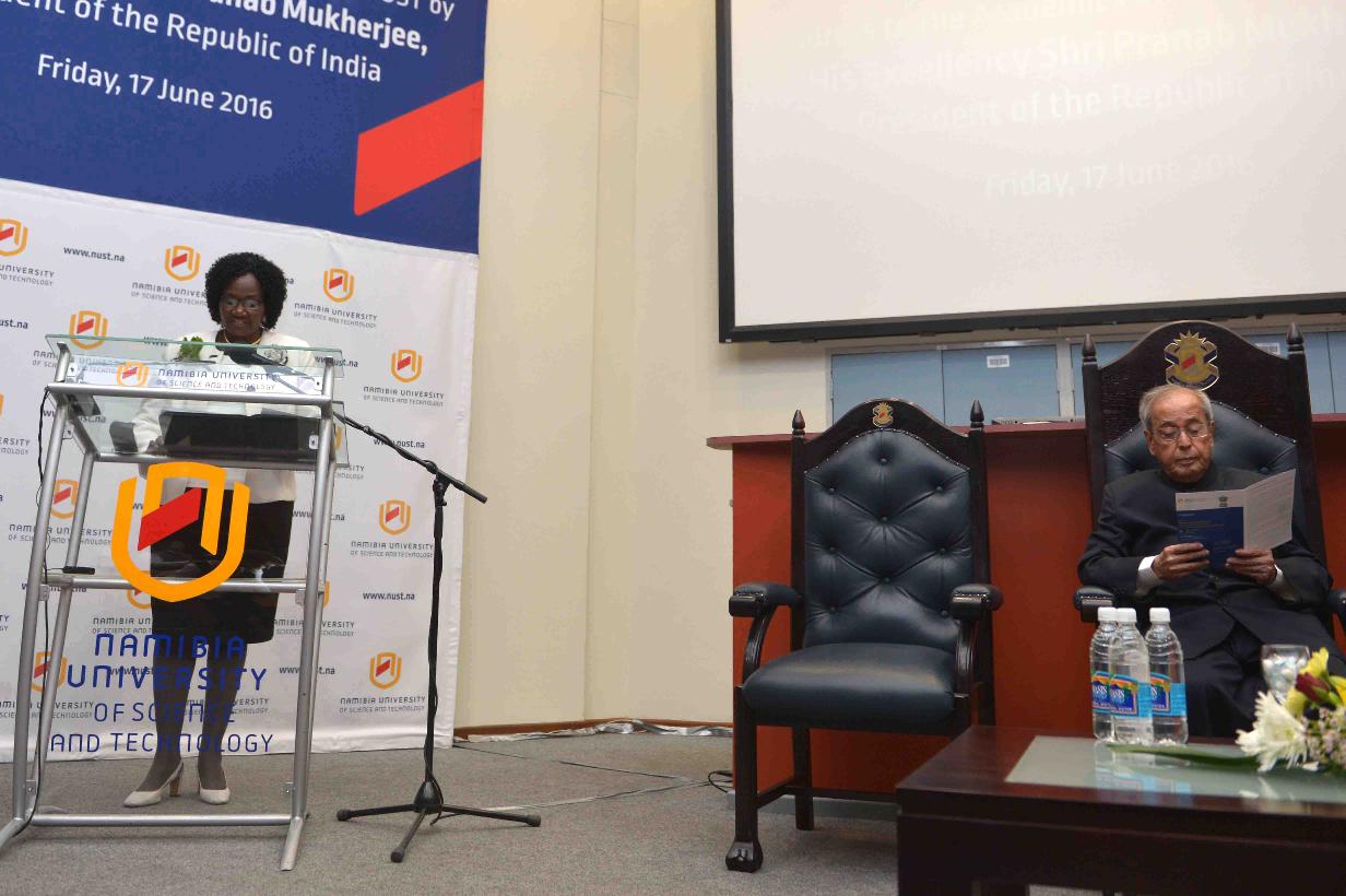 The President of India, Shri Pranab Mukherjee delivering his speech at Namibia University of Science & Technology, in Windhoek, Republic of Namibia on June 17, 2016.
