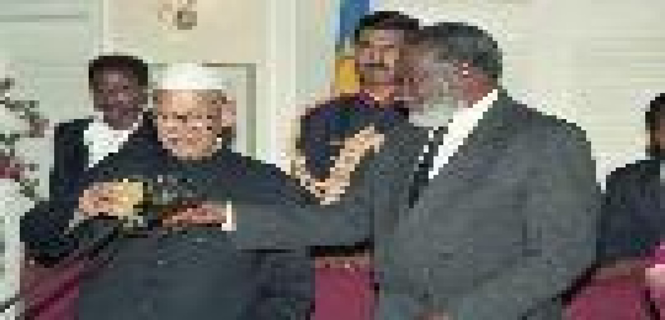 The President of India, Dr. Shankar Dayal Sharma at a Tete-a-tete with the President, Zimbabwe, Mr. Robert Mugabe, at Harare on June 07, 1995.