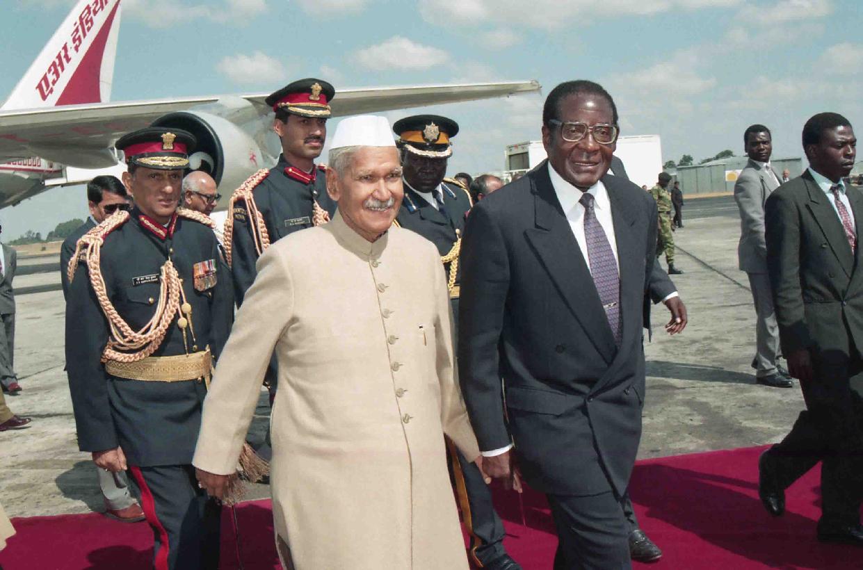 The President of India, Dr. Shankar Dayal Sharma being accorded a Ceremonial Welcome, on his arrival at Harare airport on June 07, 1995. The President, Zimbabwe Mr. Robert Mugabe received his Indian counterpart at airport.