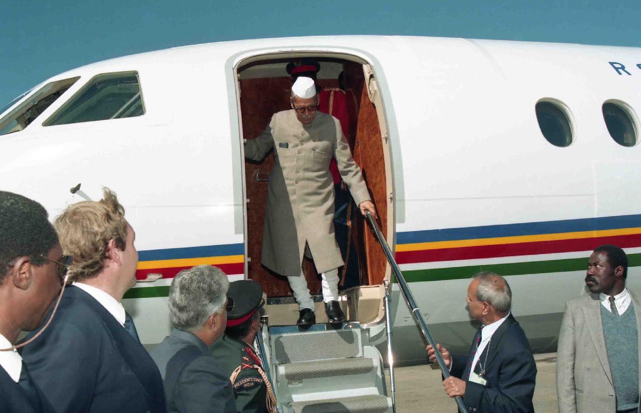 The President of India, Dr. Shankar Dayal Sharma arrives at Rooikop airport, Walvis Bay on June 06, 1995.