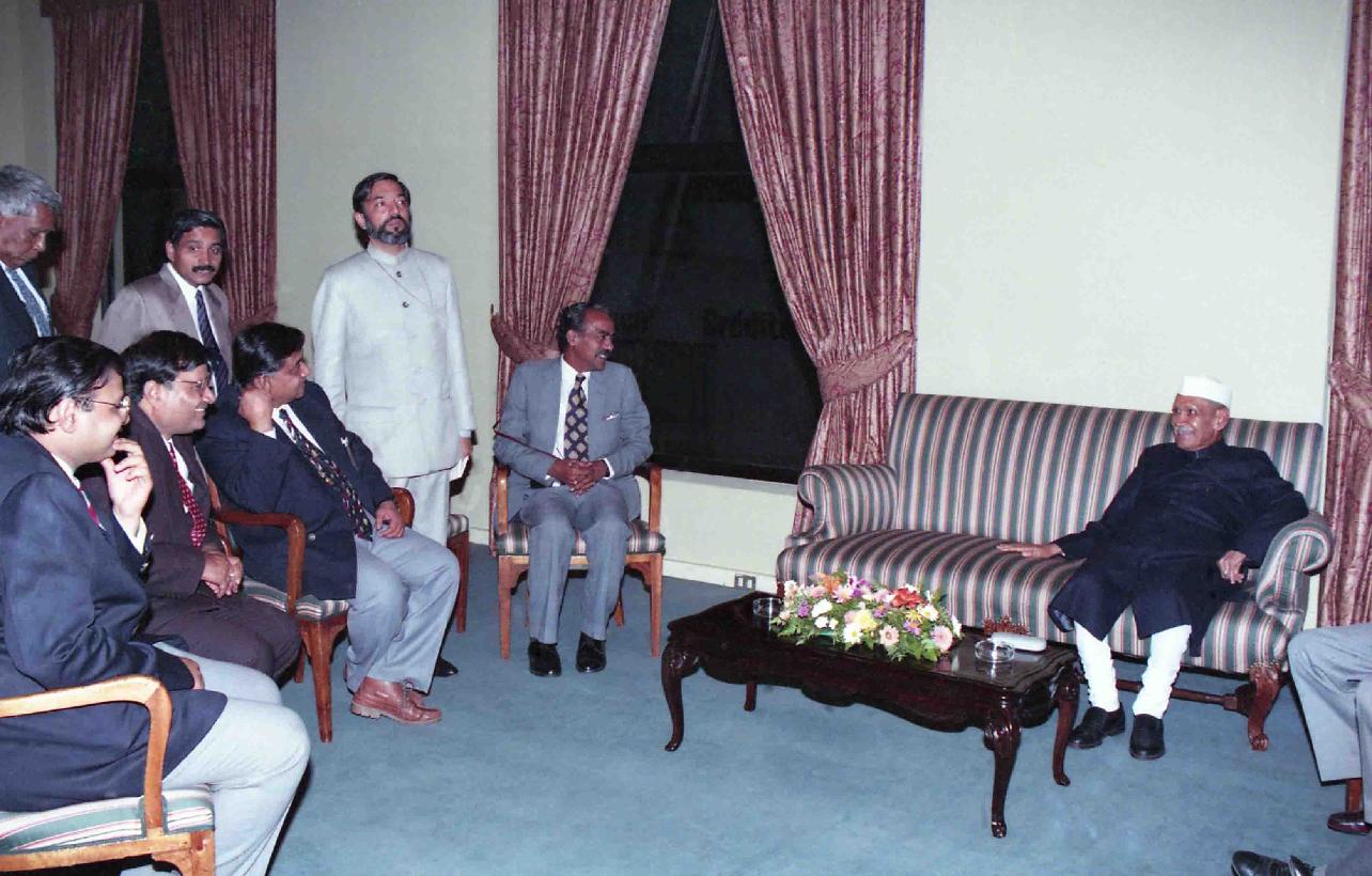 The President of India, Dr. Shankar Dayal Sharma meeting with Journalists, at Santiago, in Chile on June 03, 1995.