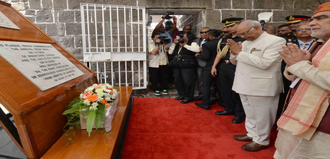 The President of India, Shri Ram Nath Kovind visiting Aapravasi Ghat World Heritage Site, at Port Louis, in Mauritius on March 12, 2018.