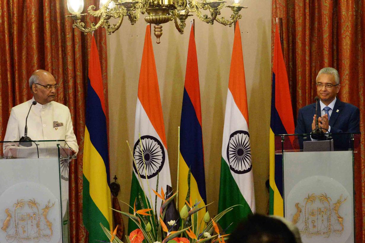 The President of India, Shri Ram Nath Kovind and the Prime Minister of the Republic of Mauritius, Hon. Pravind Kumar Jugnauth delivering Press Statements after witnessing the Exchange of Agreements/MoUs on various subjects, at National Assembly, in Mauritius on March 12, 2018.