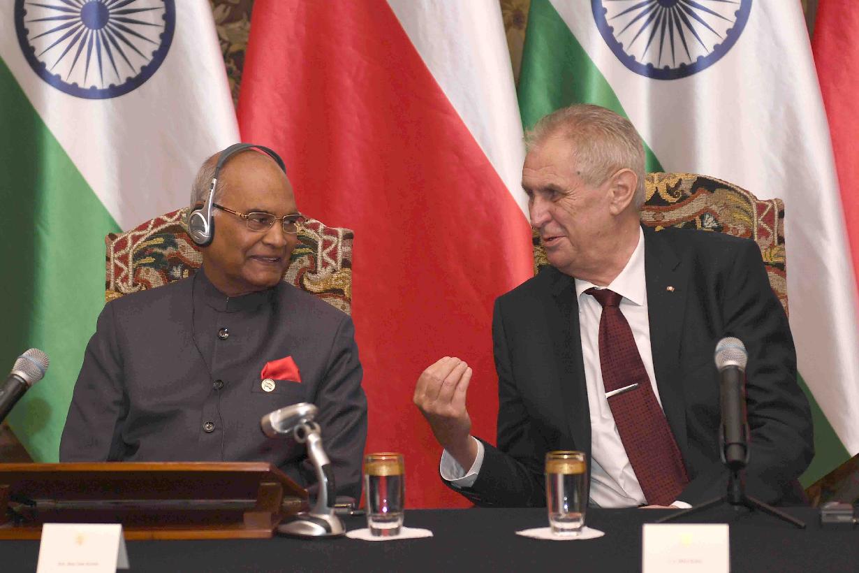 The President of India, Shri Ram Nath Kovind and the President of the Czech Republic, H.E. Mr. Milos Zeman, during the signing of agreements between India and the Czech Republic, at 1st Courtyard, Prague Castle, in the Czech Republic on September 07, 2018.