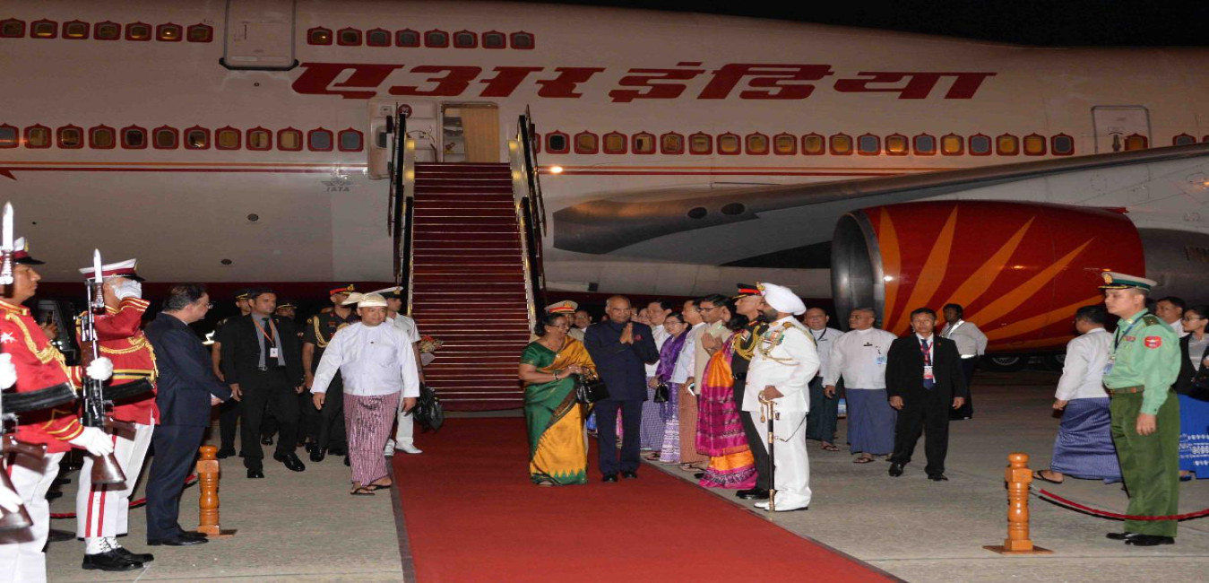 The President of India, Shri Ram Nath Kovind and the First Lady, Smt. Savita Kovind being received on their arrival, at Nay Pyi Taw International airport, in Myanmar on December 10, 2018.