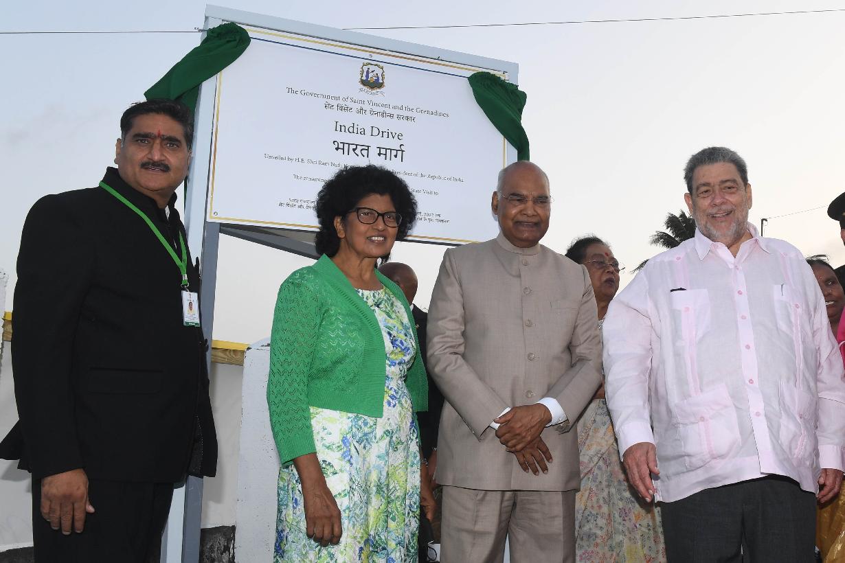The President of India, Shri Ram Nath Kovind renamed Calder Road to India Drive , in the presence of the Prime Minister of Saint Vincent and the Grenadines, Dr. the Hon. Ralph E. Gonsalves, at a function, in Kingstown, Saint Vincent and the Grenadines on May 19, 2022.