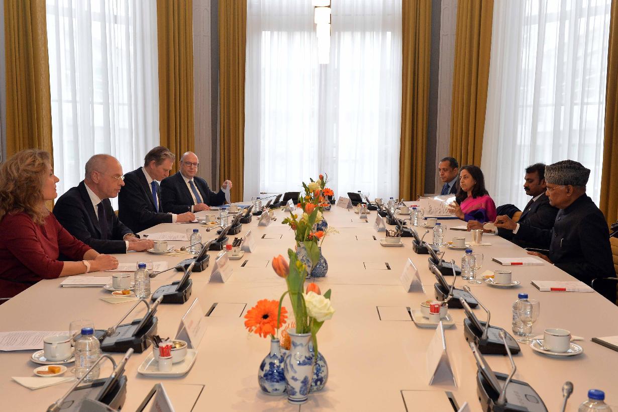 The President of India, Shri Ram Nath Kovind visited the Senate of the States-General of the Netherlands, at The Hague on April 06, 2022. The President held discussions with the President of the Senate, Mr. Jan Anthonie Bruijn, President of the House of Representatives, Ms. Vera Bergkamp and other members.