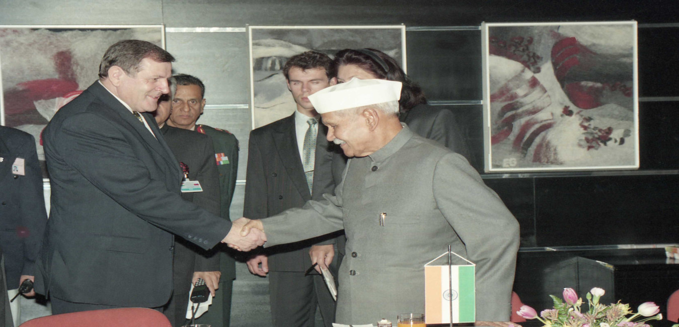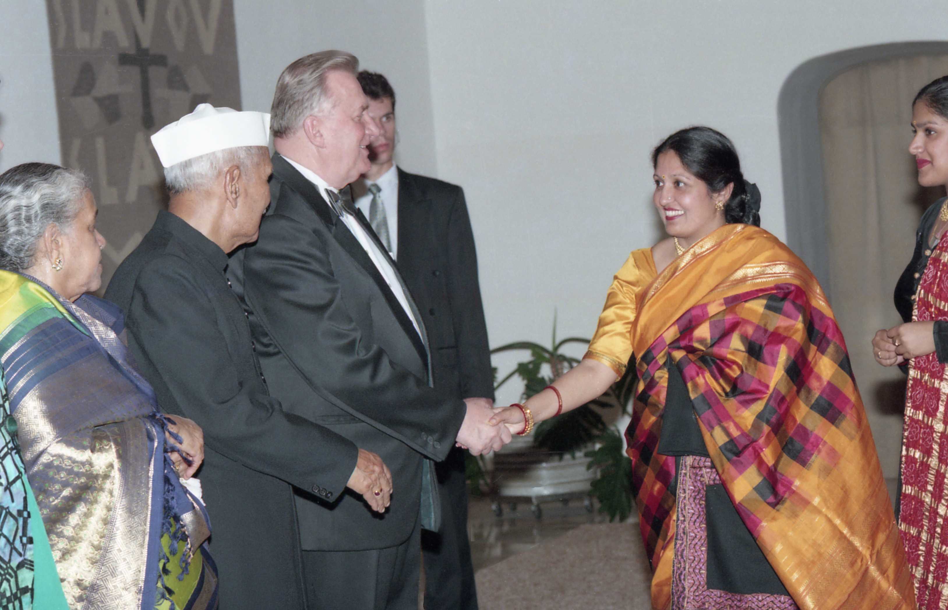 The President of India, Dr. Shankar Dayal Sharma arrives at Ruzyne Government airport, Prague, in Czech on October 10, 1996.