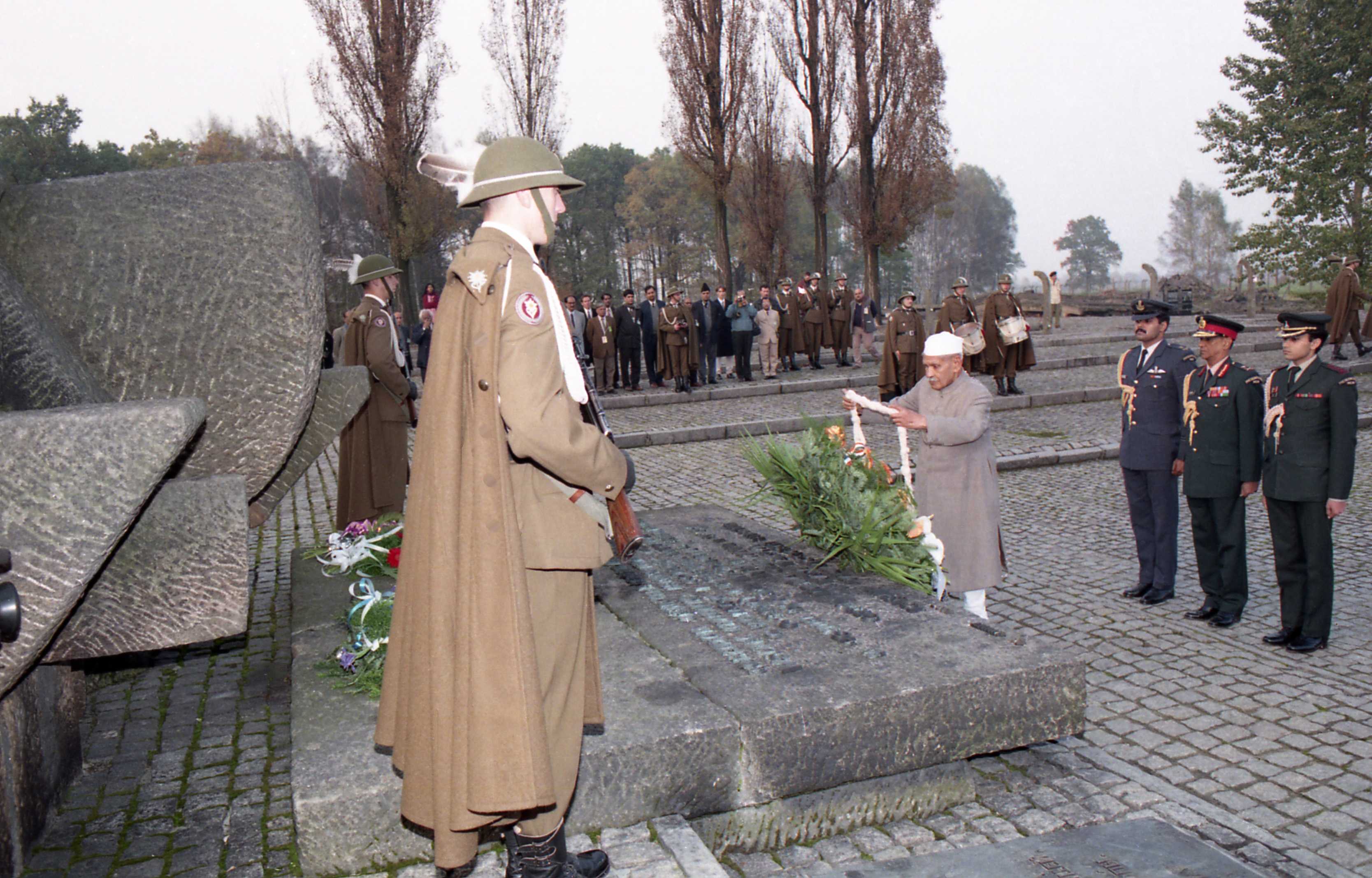 The President of India, Dr. Shankar Dayal Sharma laying wreath at the Monument of Nations, at former Birkenau Concentration Camp, in Warsaw, Poland on October 08, 1996.