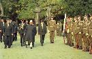 The President of India, Dr. Shankar Dayal Sharma with the President of the Slovak Republic, Mr. Michal Kovac, at farewell ceremony, at Presidential Palace, in Bratislava, Slovakia on October 10, 1996.