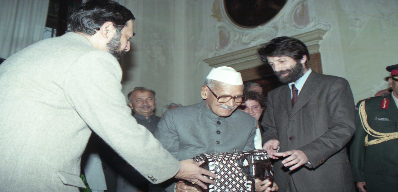 The President of India, Dr. Shankar Dayal Sharma receiving Key of the City of Venice from the Mayor of Venice, Mr. Massimo Cacciari, at City Hall, in Rome, Italy on October 16, 1996.