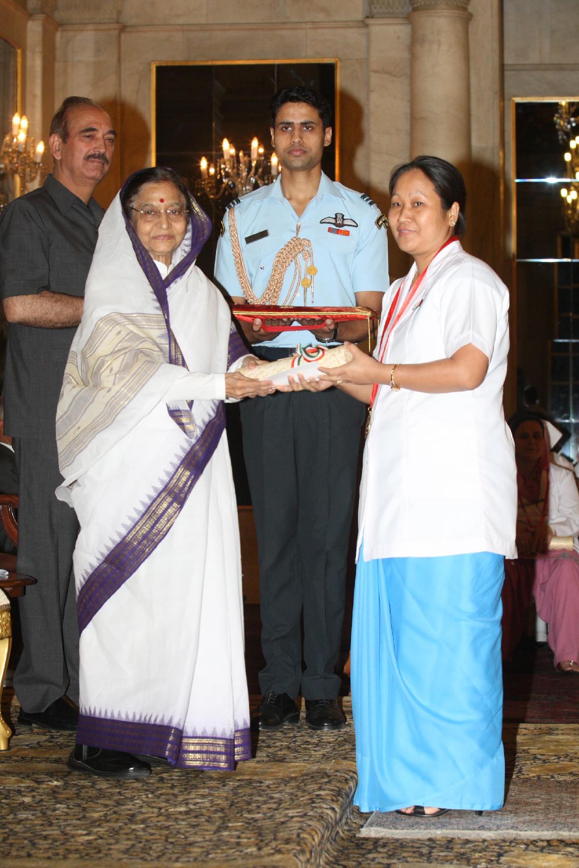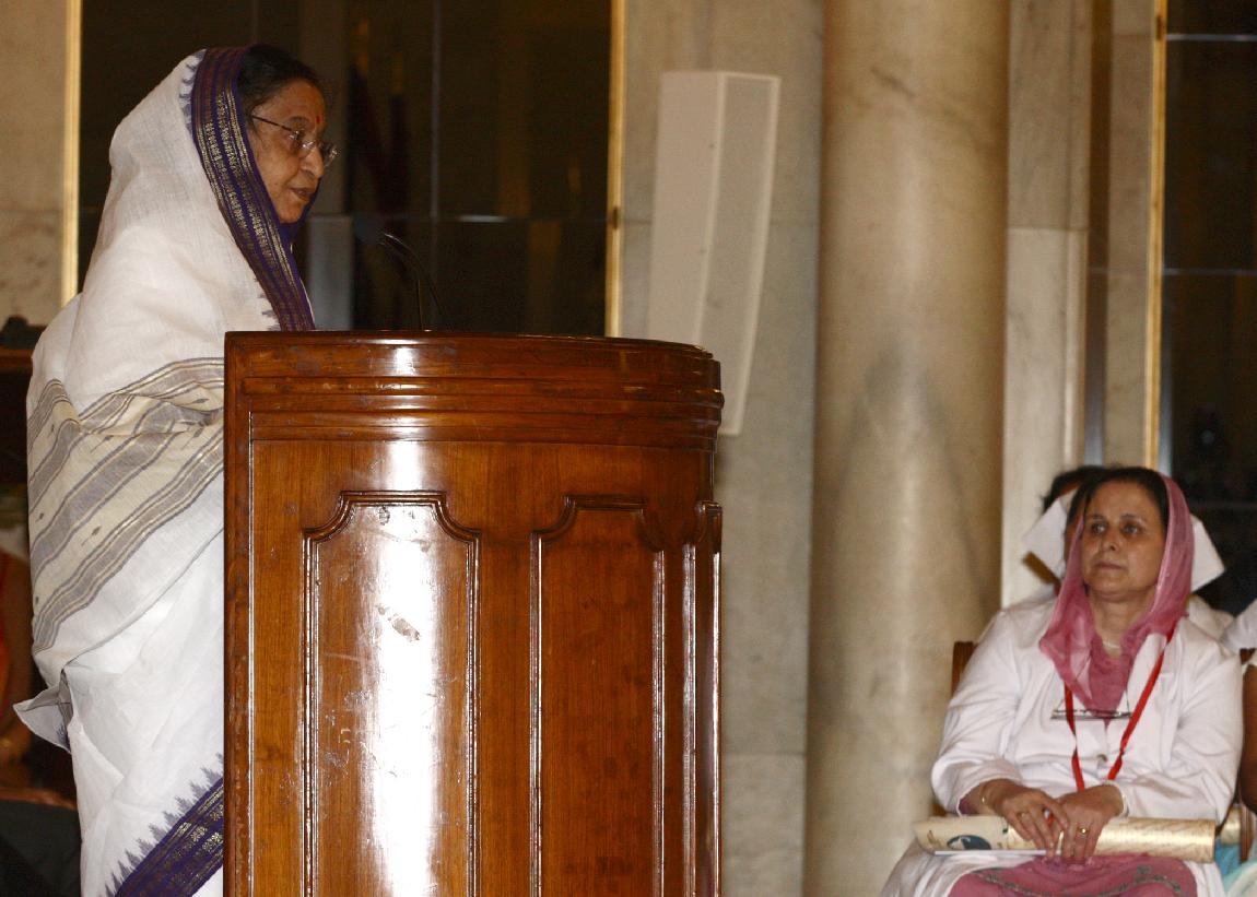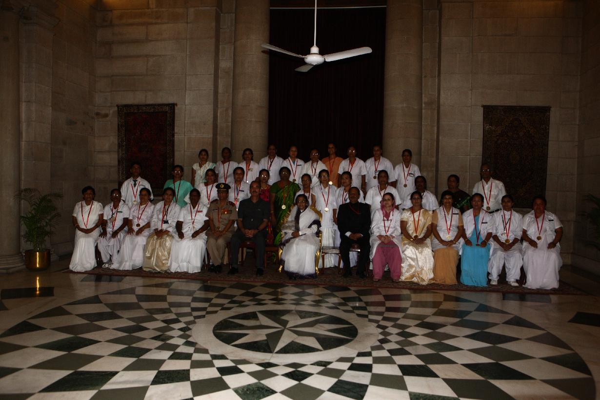 | Caption: | The President of India, Smt Pratibha Devisingh Patil presenting the National Florence Nightingale Nurses Awards for the year 2011 to Meritorious Nursing Personnel on the occasion of International Nurses Day at Rashtrapati Bhavan in New Delhi on May 12, 2011 |