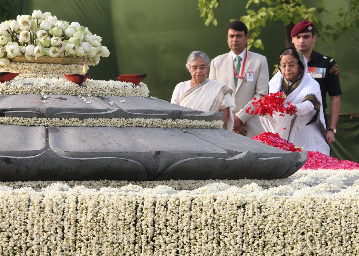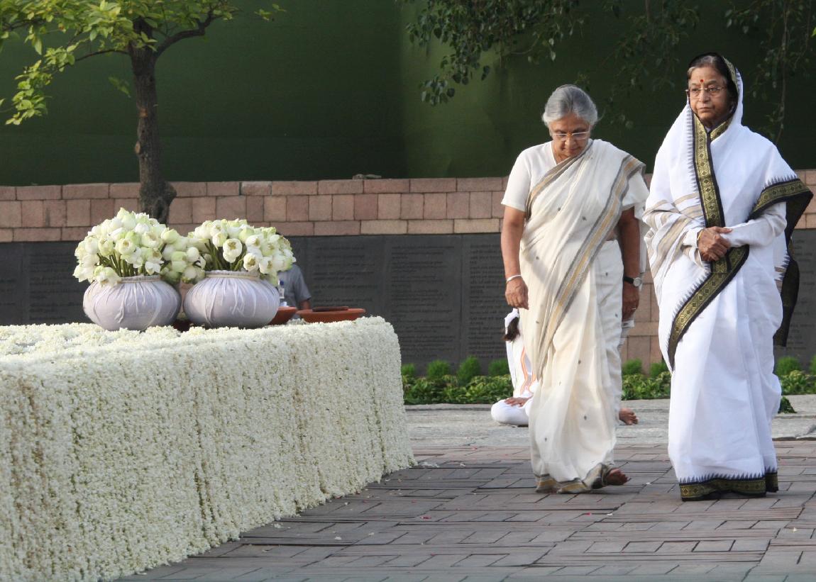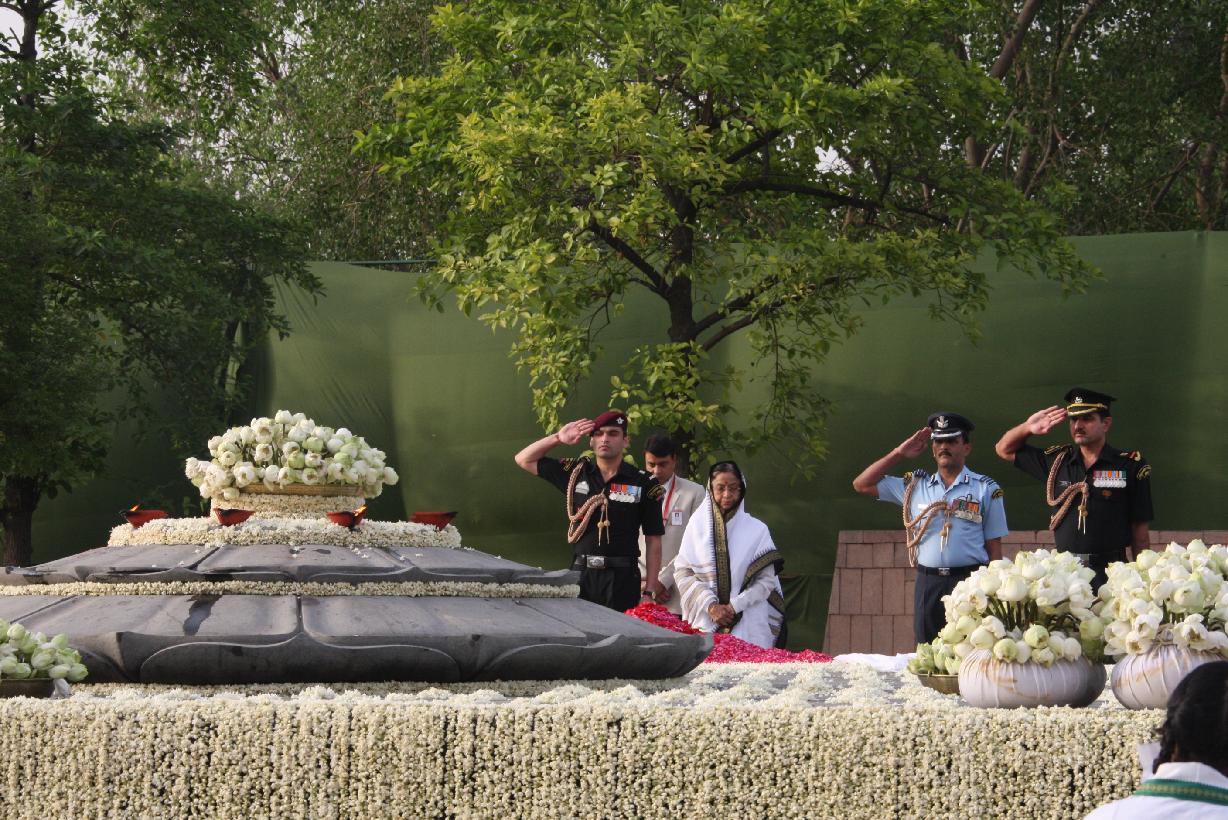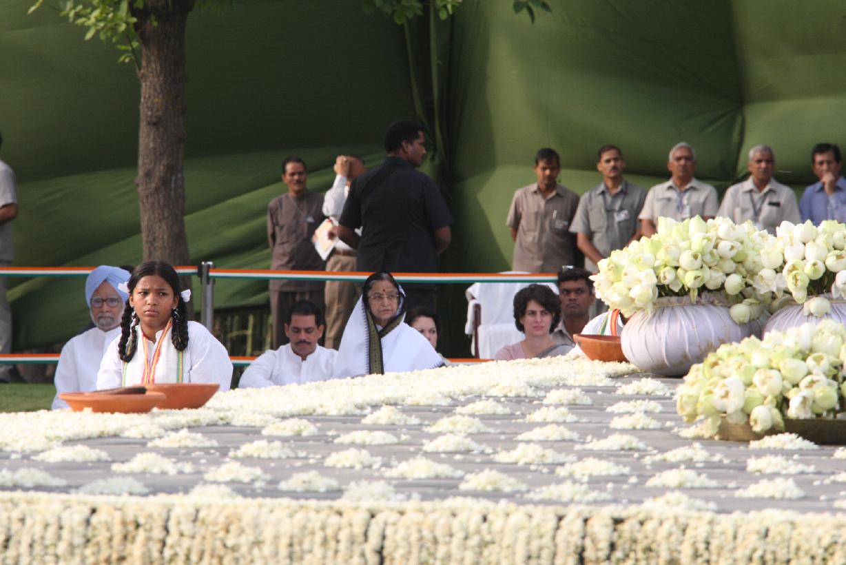 | Caption: | The President of India, Smt Pratibha Devisingh Patil paying homage at the Samadhi of Late Prime Minister of India, Shri Rajiv Gandhi on his 20th Anniversary of Martyrdom at Vir Bhoomi in New Delhi on May 21, 2011 |