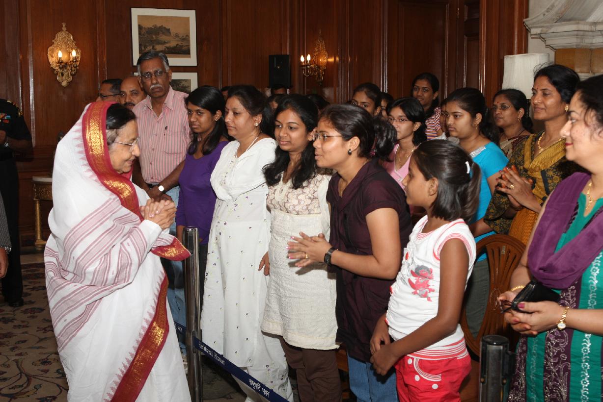 | Caption: | The President of India, Smt Pratibha Devisingh Patil interacting with Shri Gopalsingh Shekhawat and others at Rashtrapati Bhavan in New Delhi on May 27, 2011 |